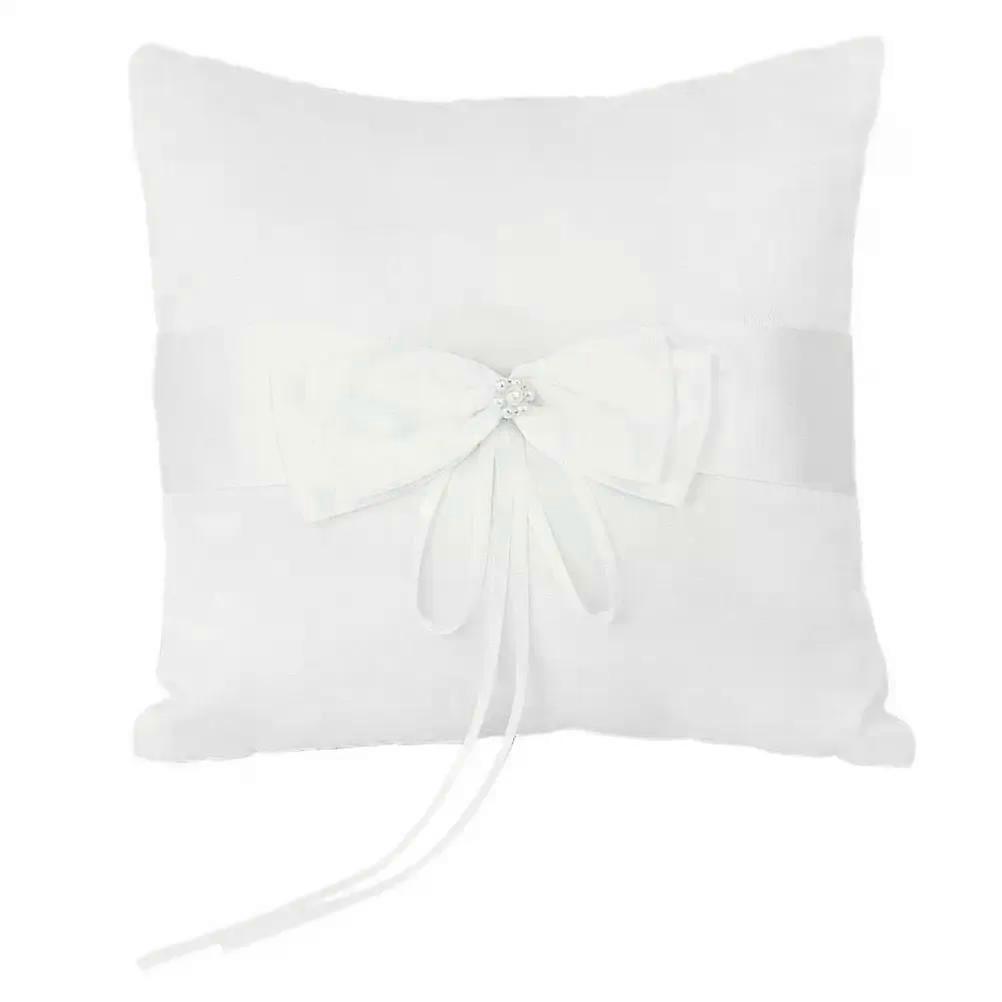Ivory Wedding Ring Pillow 10x10cm Bridal Decor Ring Bearer Pillow Satin Ribbon Pearl Flower Ceremony Accessory Party