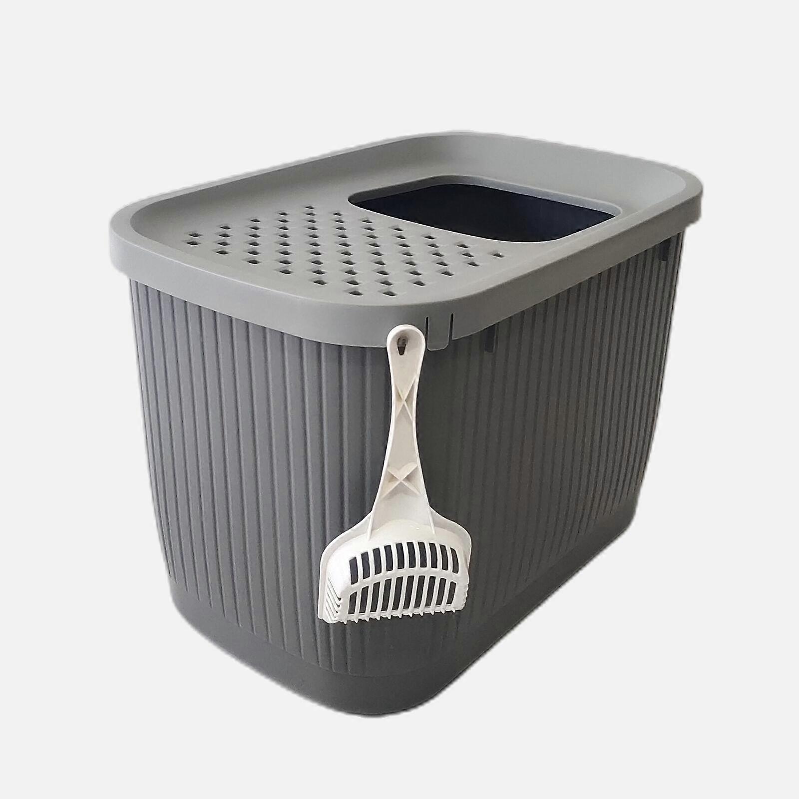 XXL Top Entry Cat Litter Box No Mess Large Enclosed Covered Kitty Tray Grey