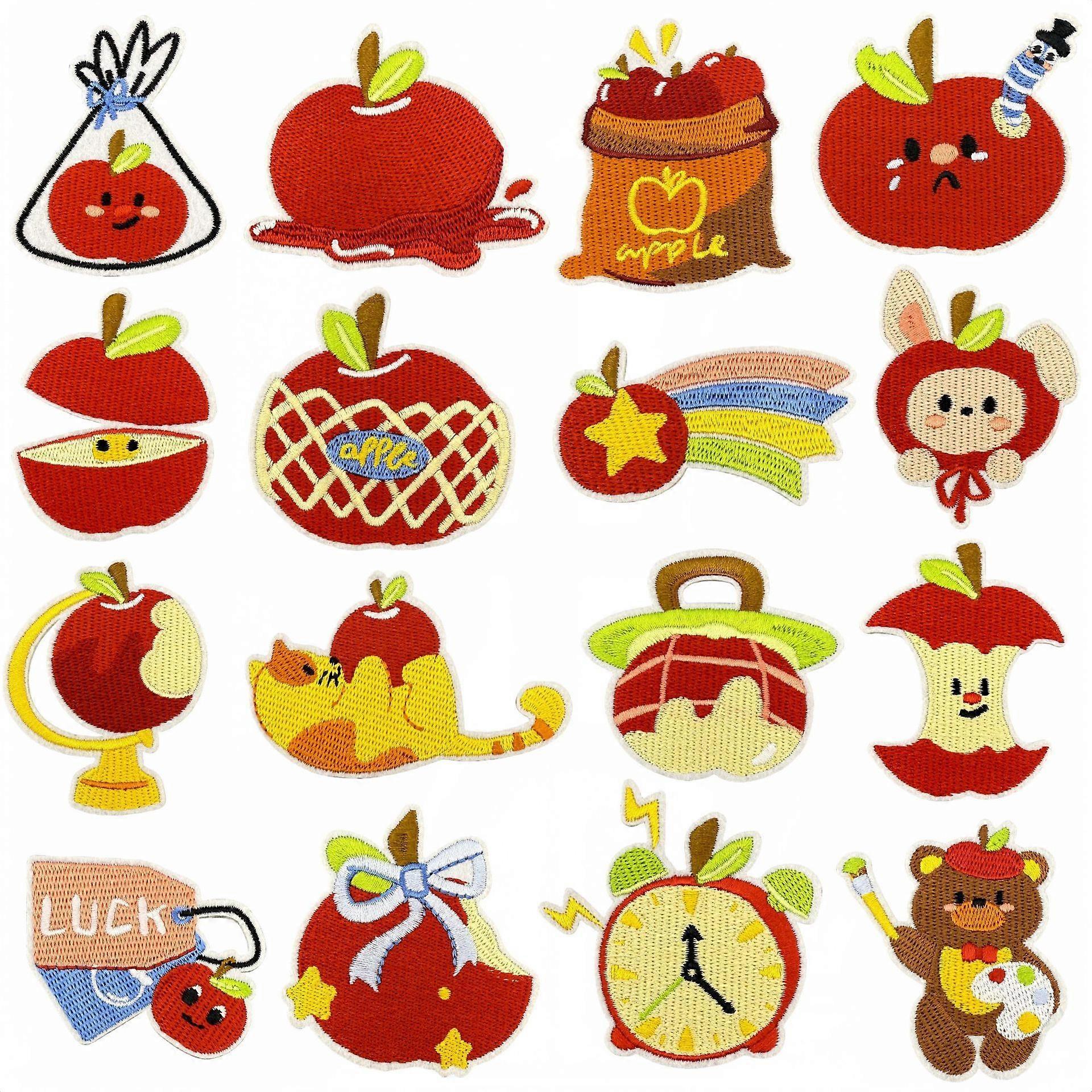 16Pcs Red Apple Iron on Patches Premium Quality Kids Children Baby Embroidered Applique for Clothes Jackets Jeans Backpacks