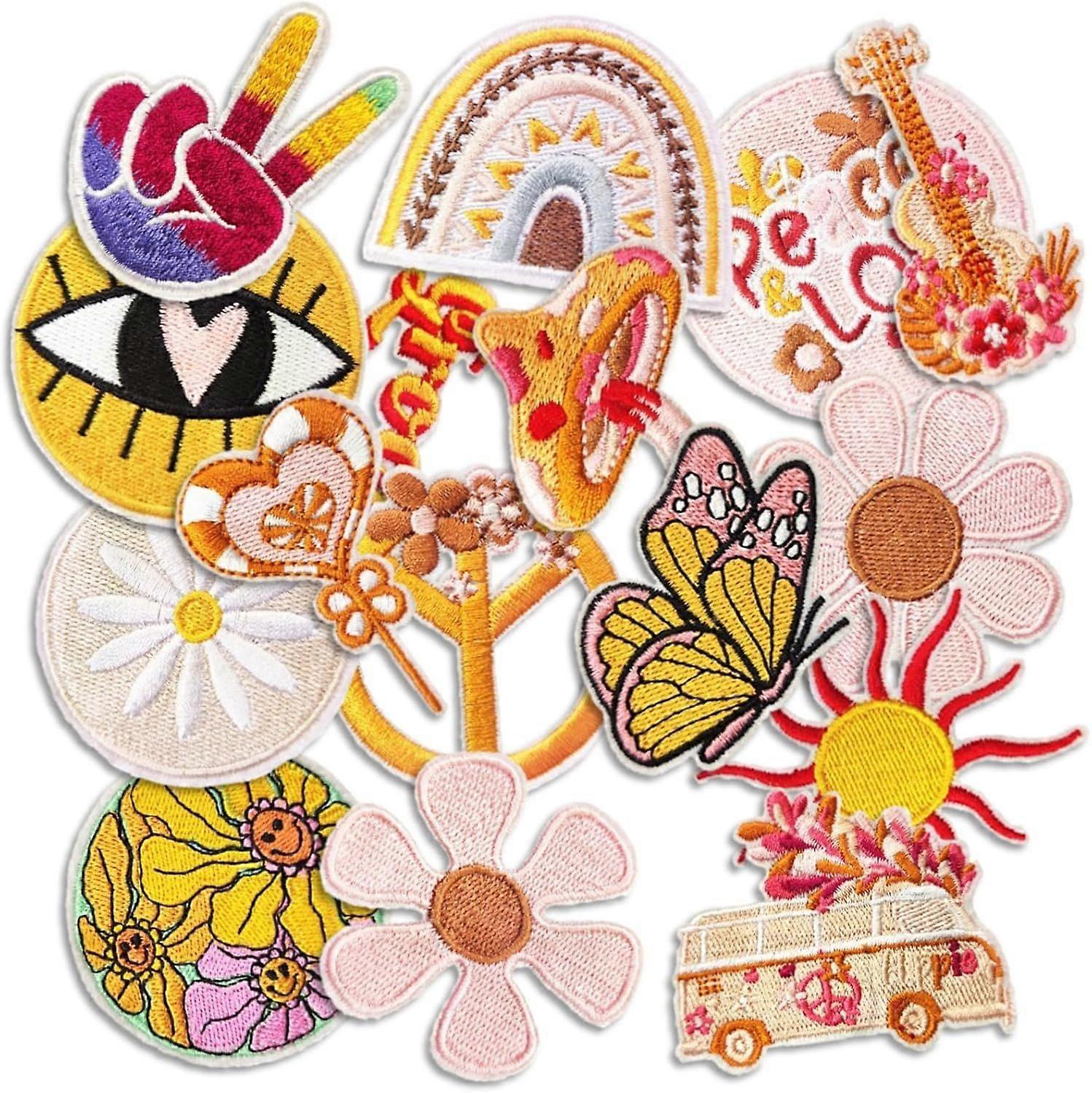 16 Pcs Kawaii Cartoon Iron On Patches, Cute Decor Patches for Backpacks, Embroidery Applique Aesthetic Stuff for Clothing, Jackets, Jeans, Hats