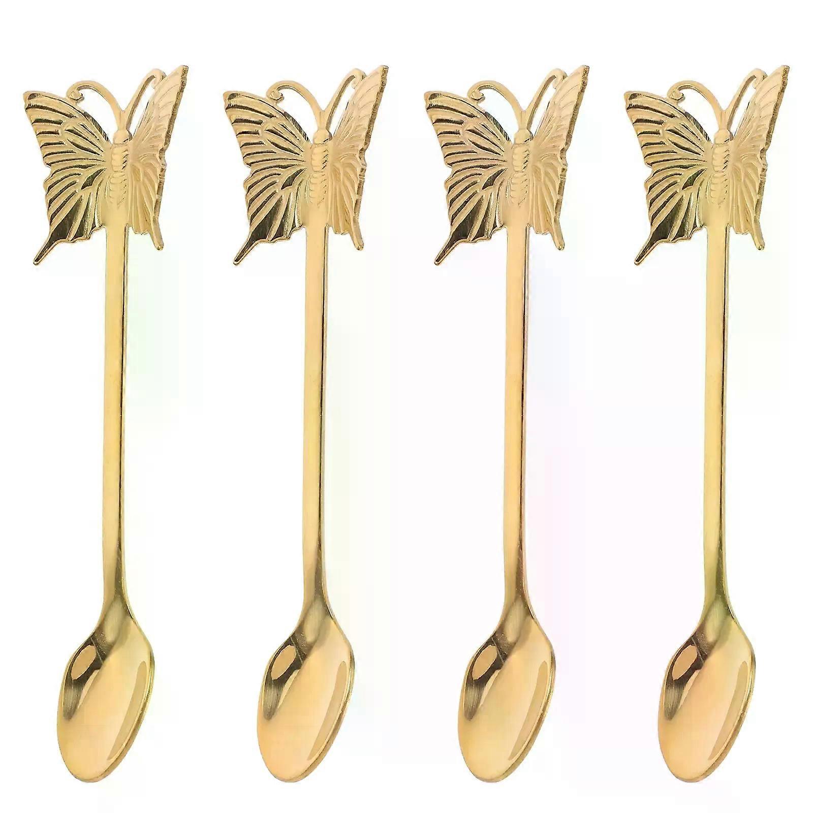 4 Pcs Dessert Scoop Stainless Steel Butterfly Spoon Long Handle Dessert Scoop Salad Cutlery Kitchen Homeware Dining Tools