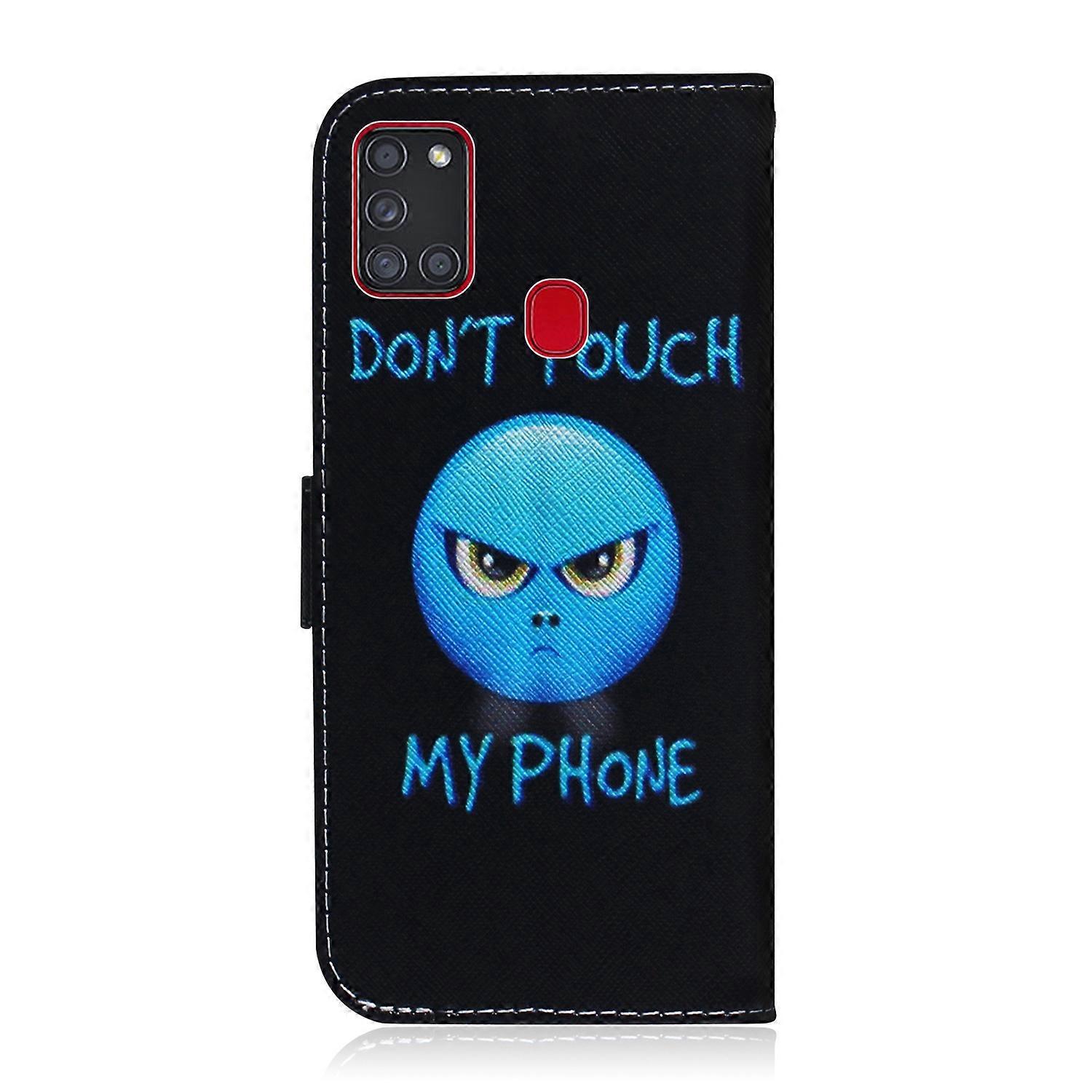 Pattern Printing PU Leather Wallet Phone Case for Samsung Galaxy A21s - Don't Touch My Phone