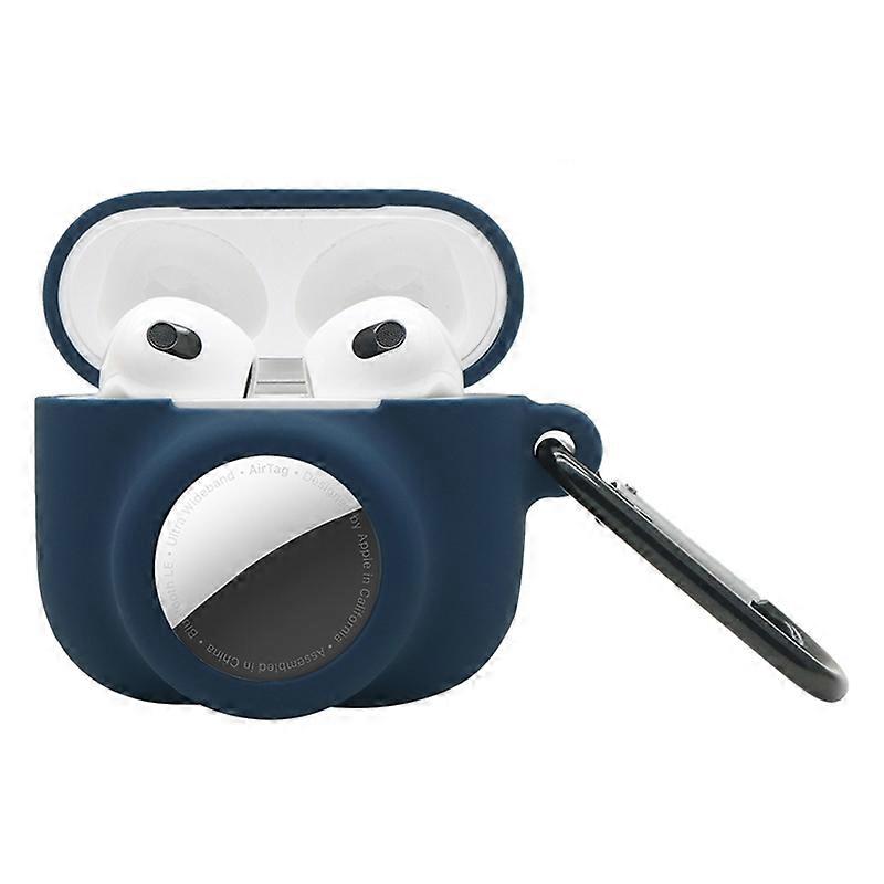 2 in 1 Soft Silicone Case Anti-scratch Protective Cover for AirPods 3 AirTag - Midnight Blue