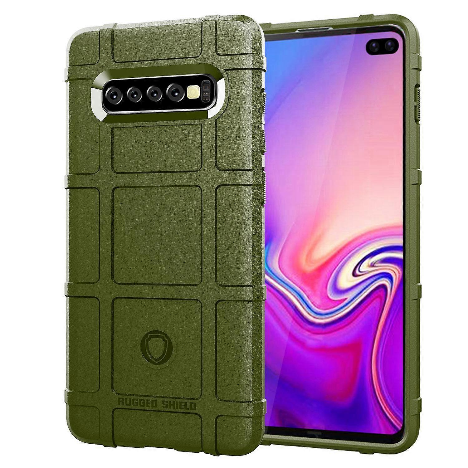 Anti-shock Rugged Square Grid Texture TPU Mobile Case for Samsung Galaxy S10 Plus - Army Green