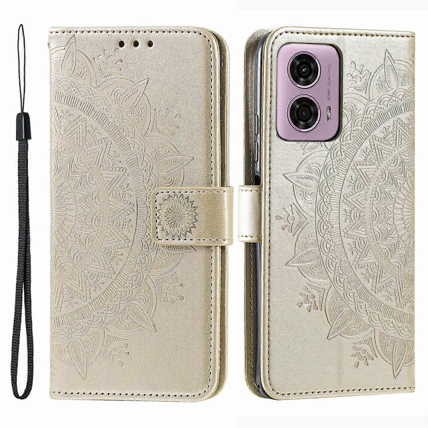 For Motorola Moto G85 5G S50 Neo 5G Case Imprinted Totem PU Leather Phone Cover - Gold