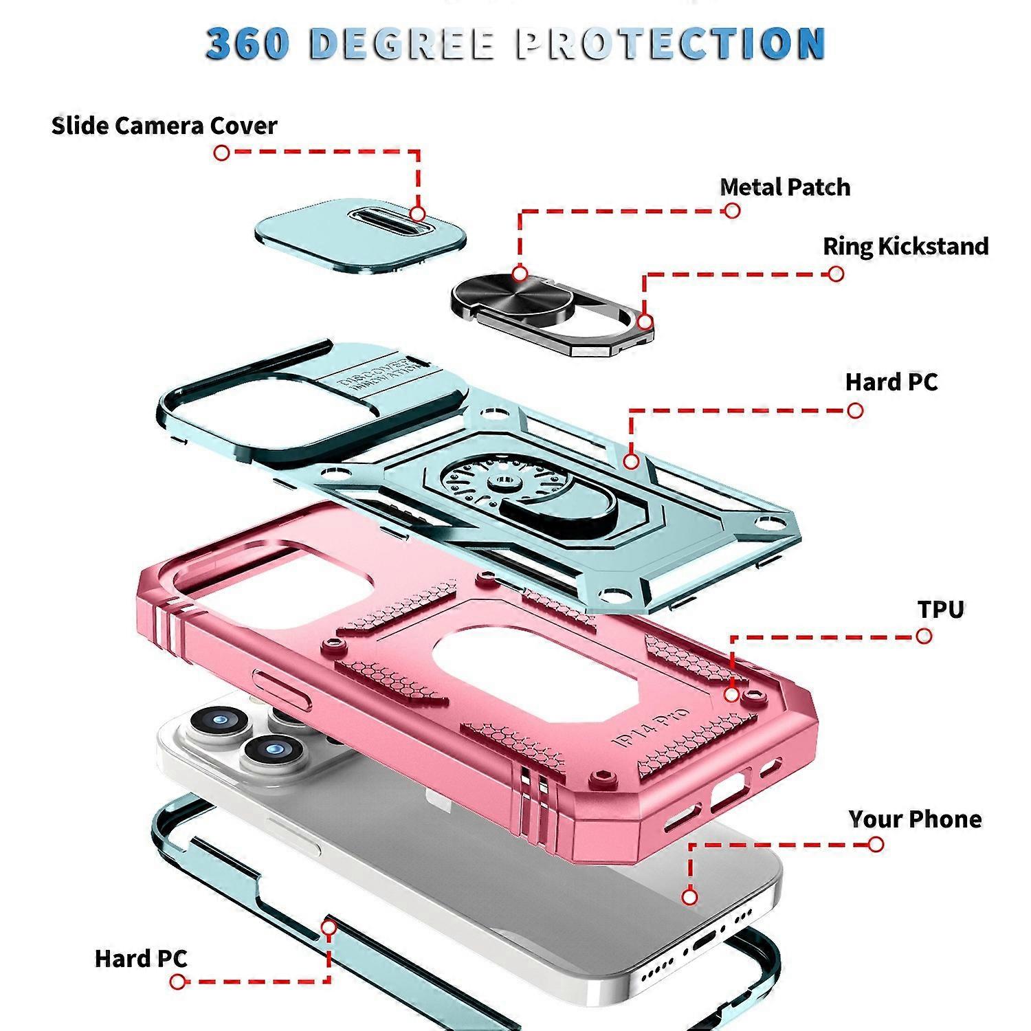 For iPhone 14 Pro Max 6.7 inch Phone Shell PC+TPU Sliding Camera Lens Cover Design Case with Kicksta