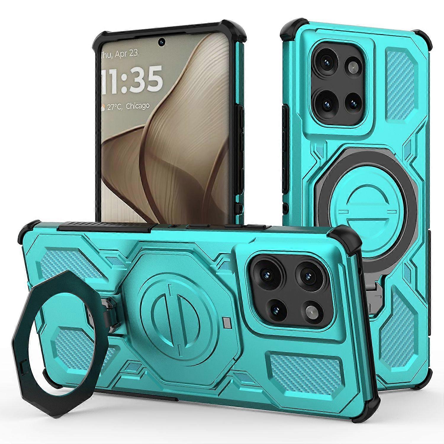 For Motorola Edge 50 5G Magnetic Case Rotating Metal Kickstand PC + TPU Phone Back Cover - Baby Blue