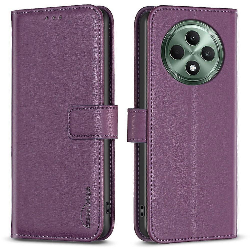 BINFEN COLOR BF17 For Oppo Reno12 F 5G Case Leather Phone Cover Wallet Stand - Dark Purple