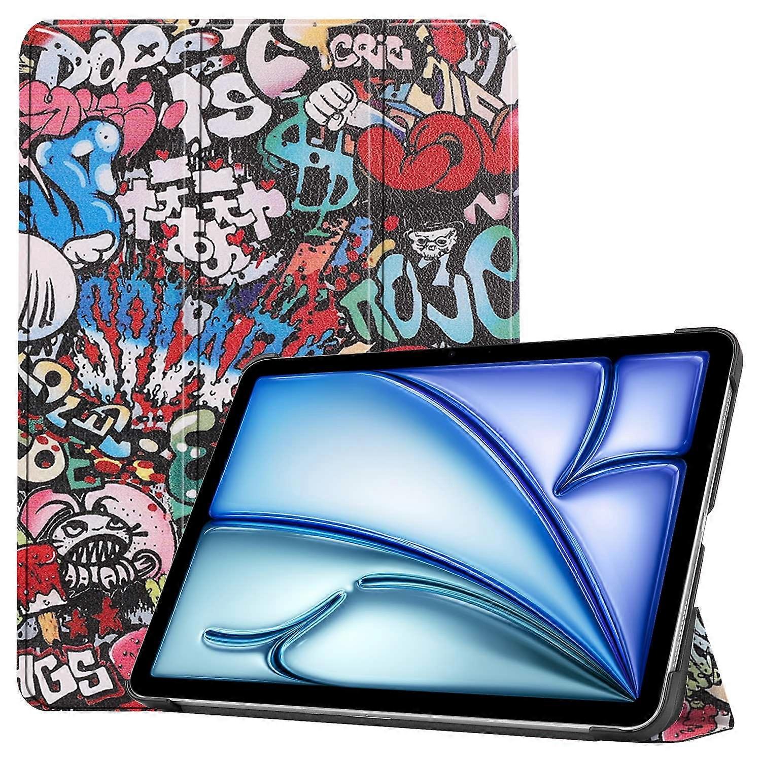For iPad Air 11 (2025) (2024) Case Trifold Stand Pattern Auto Wake Sleep Tablet Cover - Graffiti