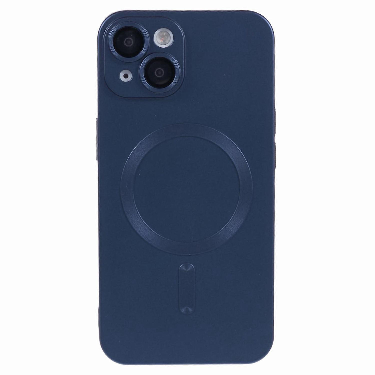 For iPhone 14 Rubberized TPU Case Compatible with MagSafe Slim Phone Cover with Lens Film - Dark Blu