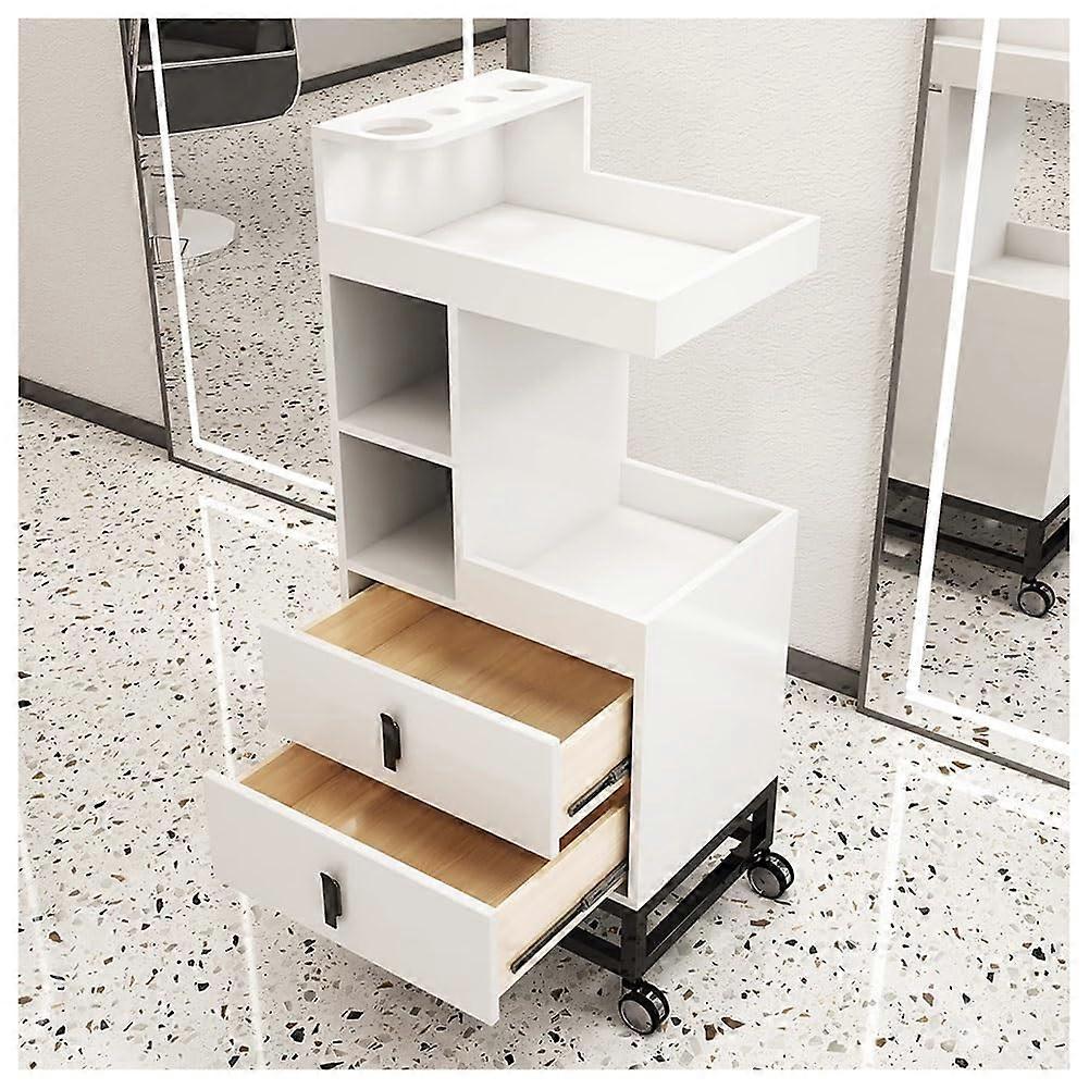 Rolling Salon Cart for Hair Stylists - White Wooden Mobile Trolley on Wheels with 2 Drawers, 38x30x82cm Beauty Spa Station