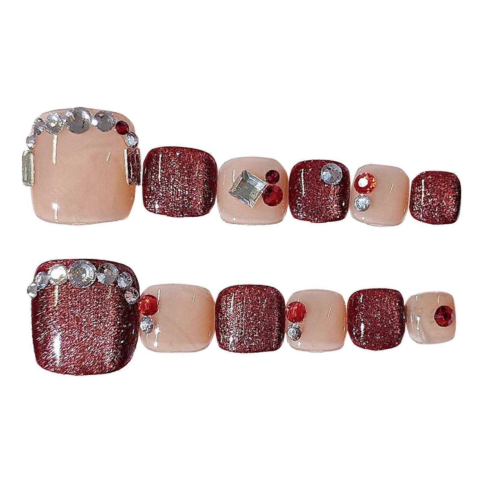12PCS Nude&Wine Red Press on Toenail with Zero Pressure on the Nail Bed Design