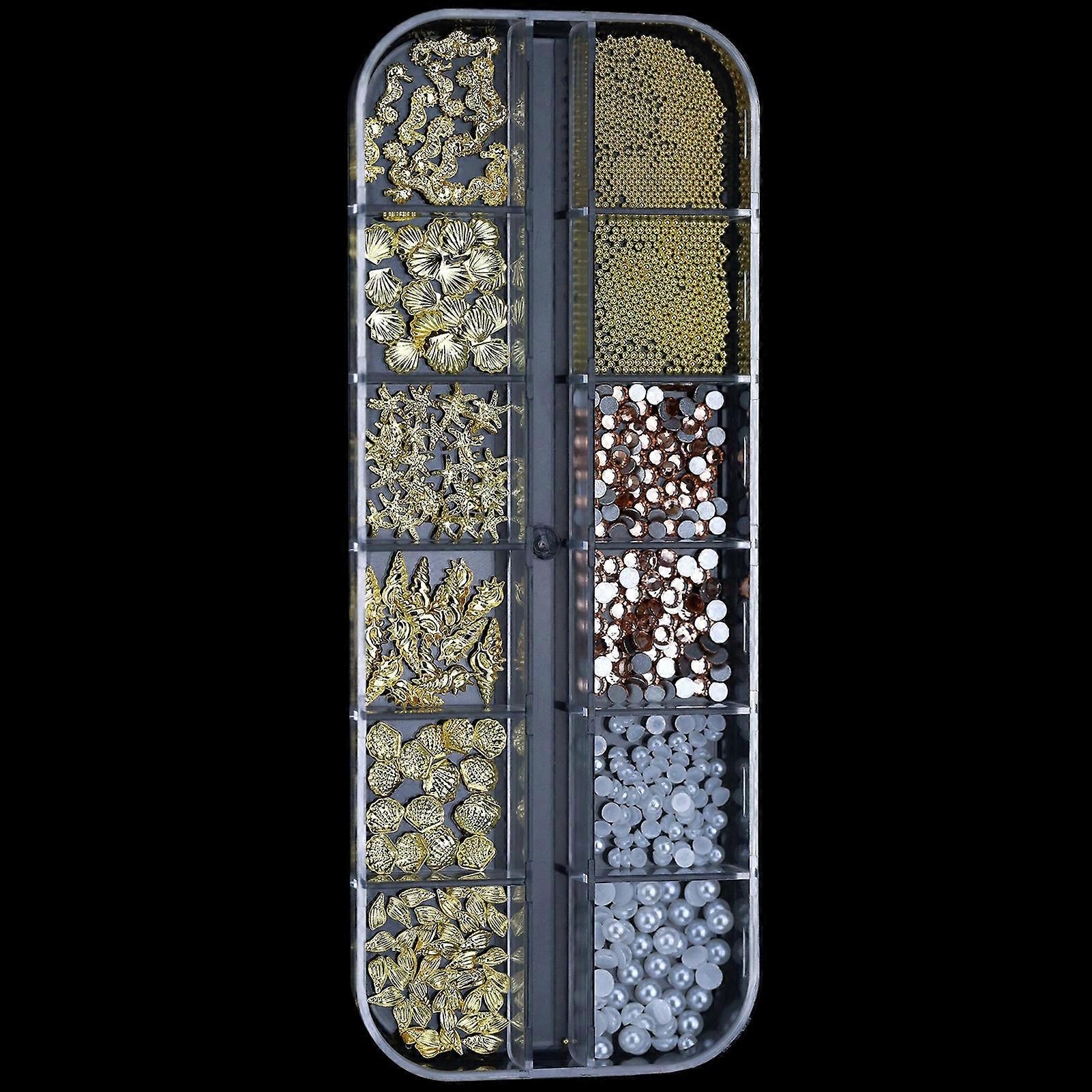12 Grids Shining Manicure Decor Set Zinc Alloy Mixed Nail Art DIY Decorations