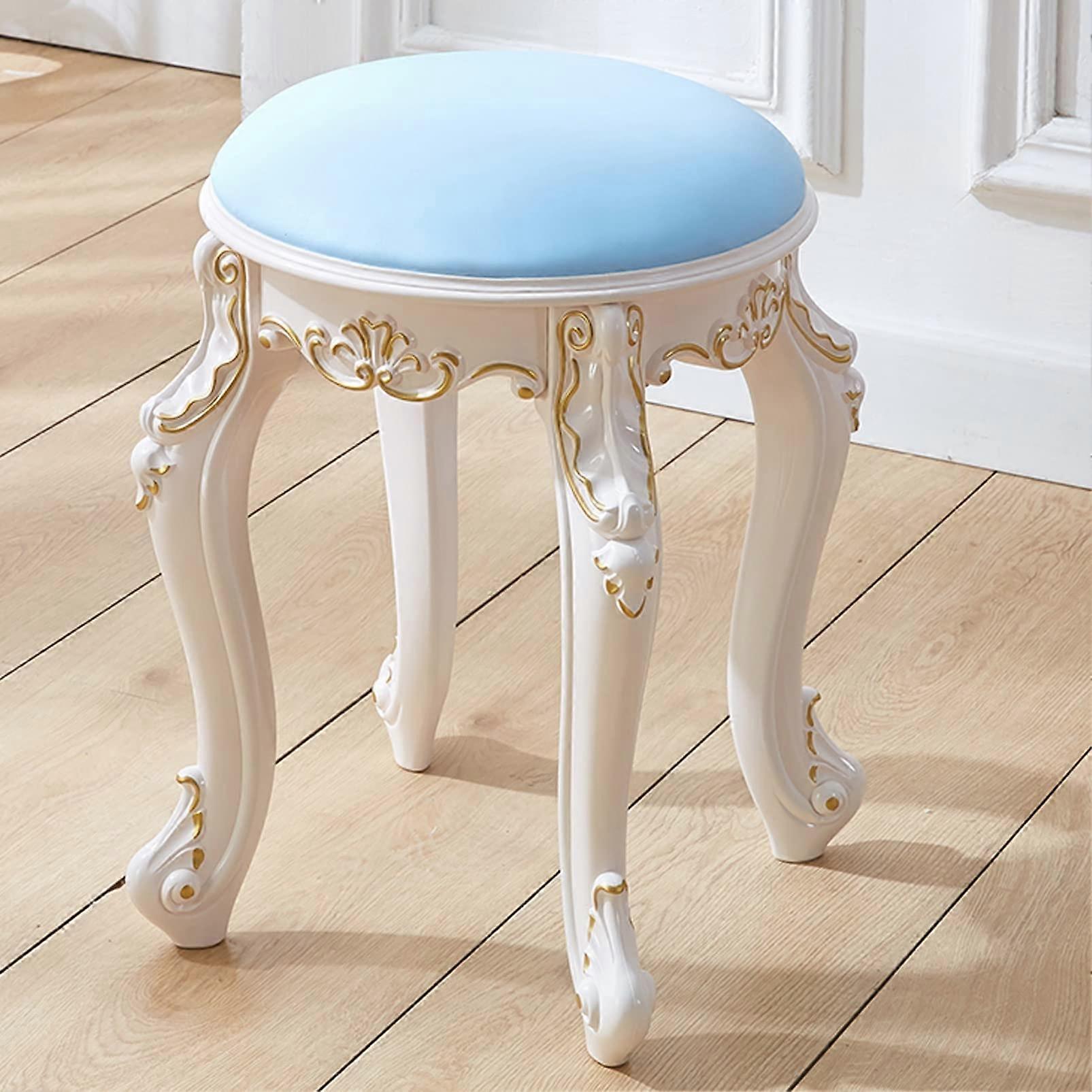 Ground Vanity Stool Padded Makeup Stool with ABS Plastic and Steel Legs, 43cm Height, Gold Painted Light Blue Leather
