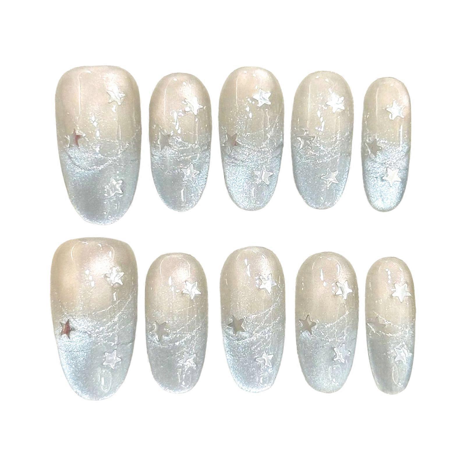 Kitty Eye Press On Nails Star Glitter Shinny Sea Nail Art Decal