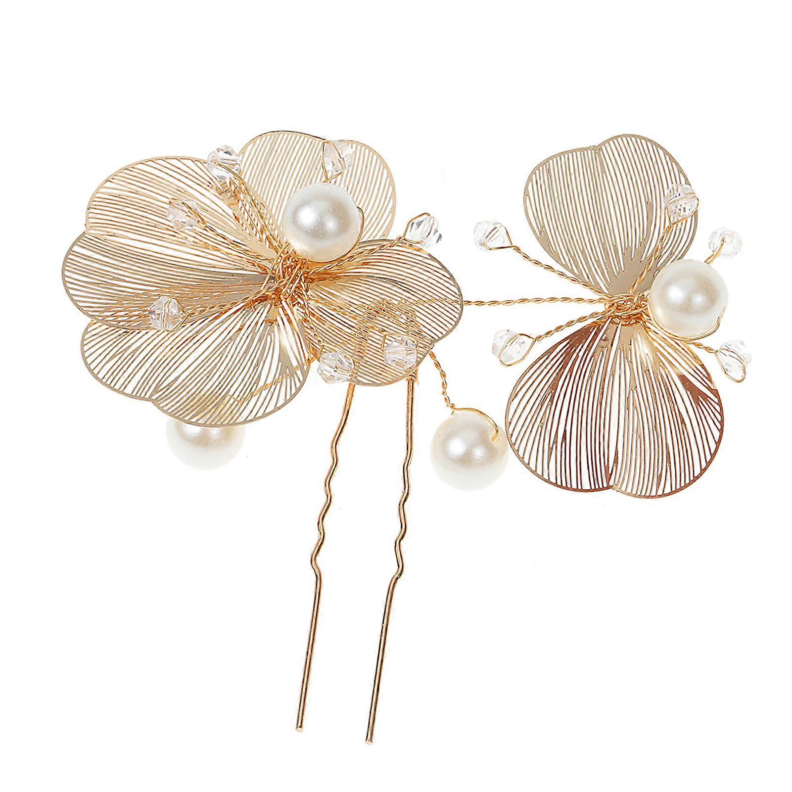Woman Bridal U Shape Hairpins 2pcs Strong Hold Ladies Gold Flower Headdress