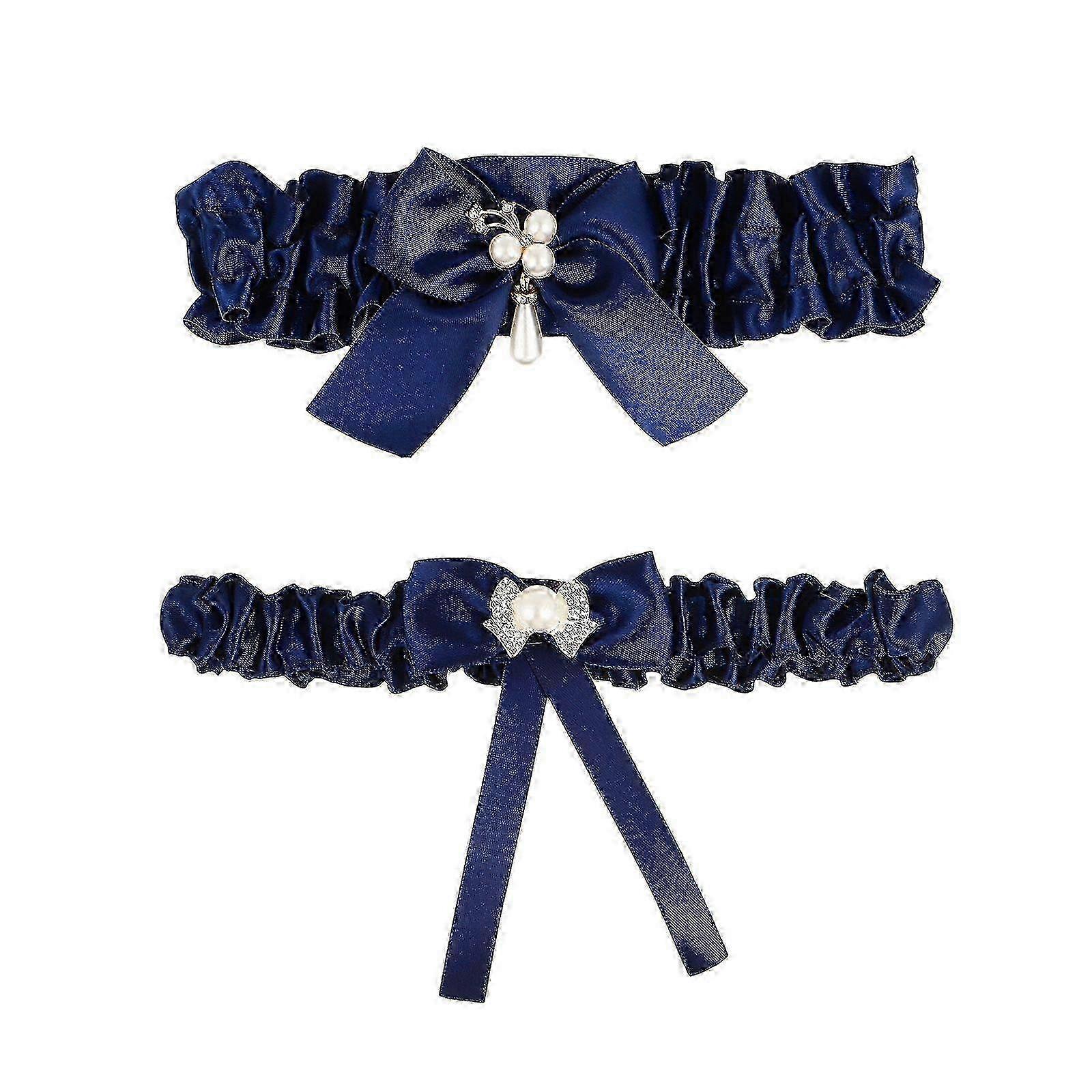 Enhanced Wedding Garter Belt Set - 2pcs Elegant Bow-Styled, Lace Bridal Thigh Bands
