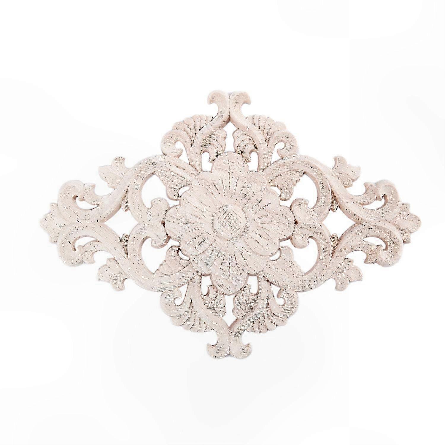 Unpainted Floral Wood Carving Applique for Wall and Cabinet Decoration, 21x15cm
