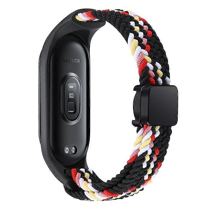 For Xiaomi Mi Band 3/4/5/6/7 Braided Nylon Strap Magnetic Watch Band - Black Rainbow