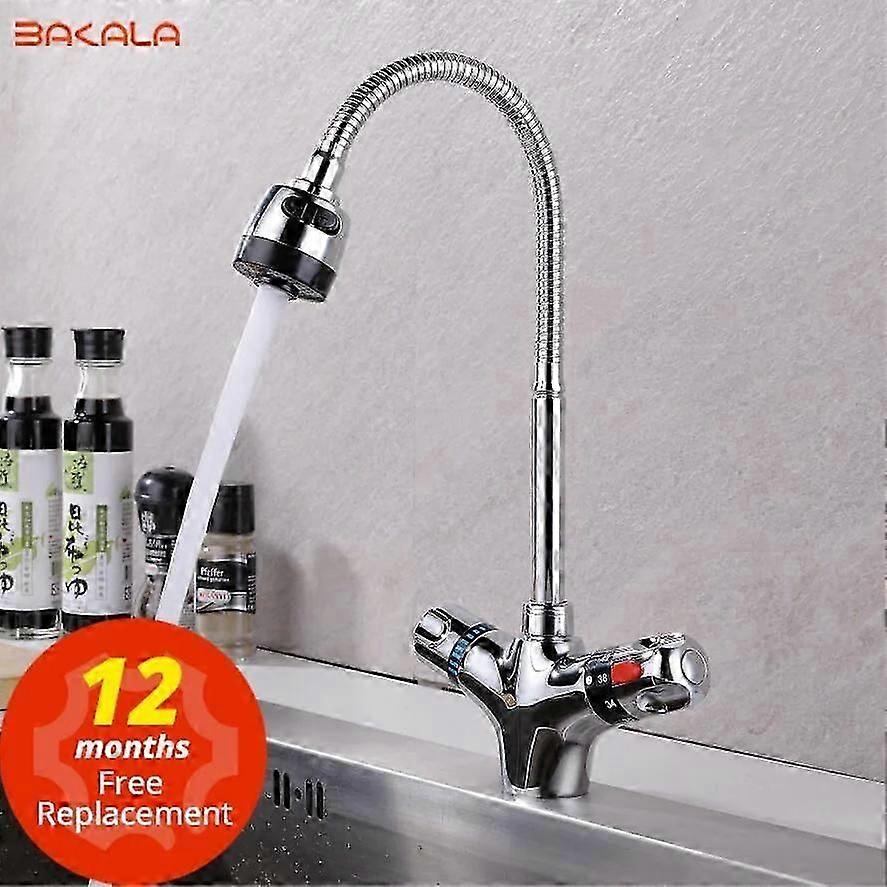 Solid Brass chrome finish Kitchen Mixer tap Cold and Hot Kitchen thermostatic faucet Constant temperature mixer basin faucet-M