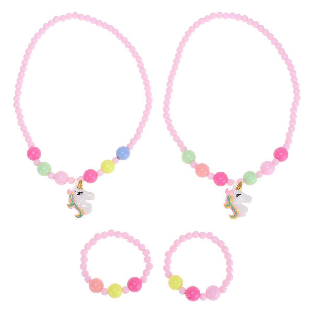 2 Set Kids Bracelets Beautiful Necklace Jewelry Unicorn Bracelets for Girls Kids Children (Pink)
