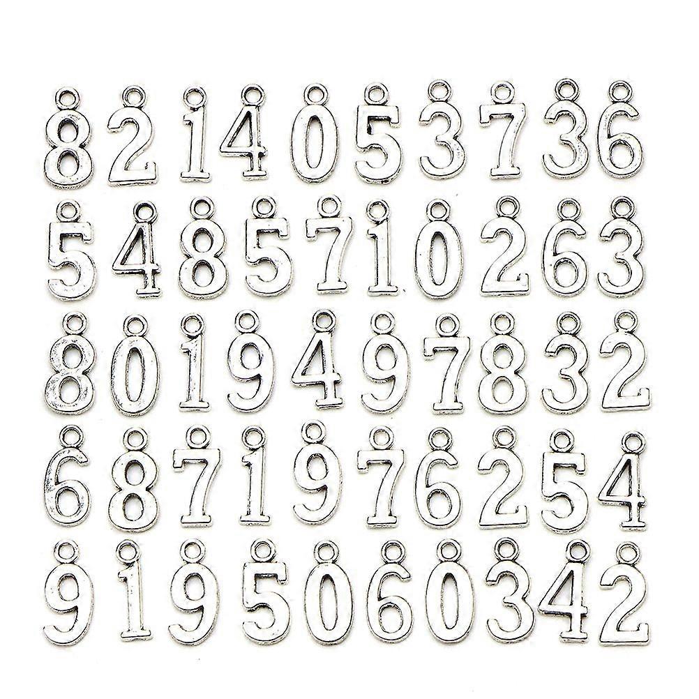 50pcs Number 0-9 DIY Accessories for Crafts Bracelets Necklace Keychain Pendant Jewelry (0-9 Numbers, 5pcs Each)