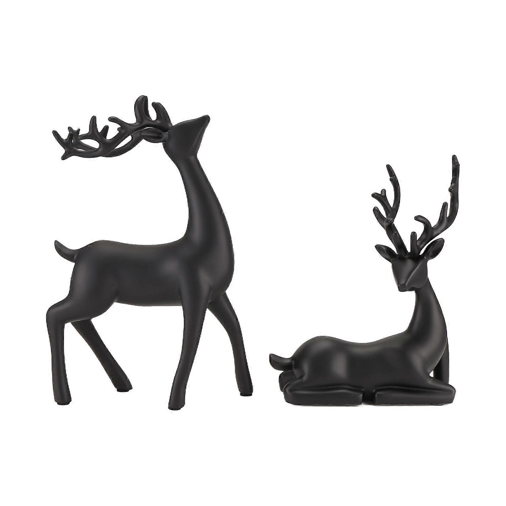Reindeer Figurines Set of 2 Resin Deer Statues Elk Sculpture Deer Ornaments for Living Room TV/Wine Cabinet Home Decor B