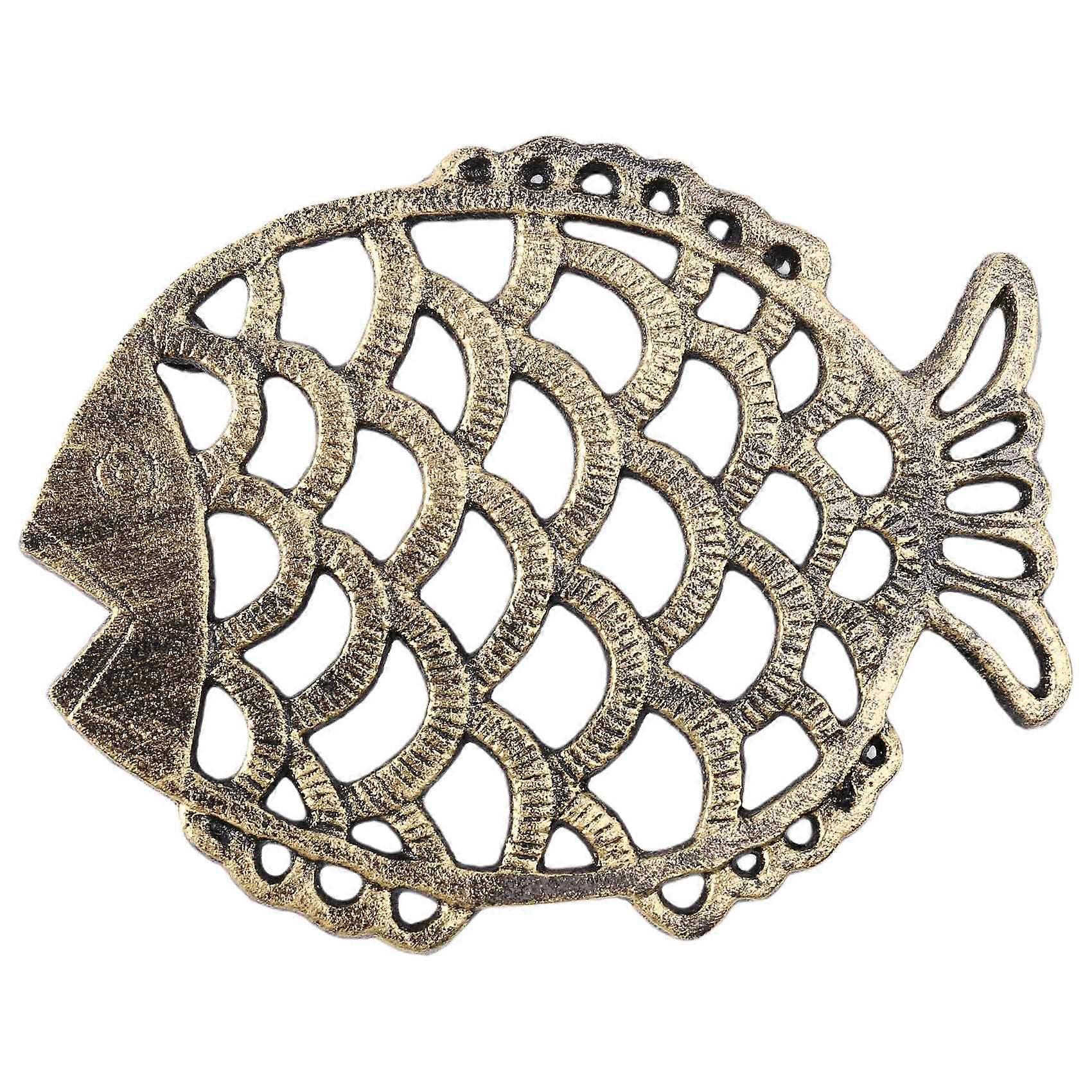 Cast Iron Fish Trivet, 7.5X6Inch Decorative Vintage Pattern for Cookware and Hot Dishes with Rubber Feet