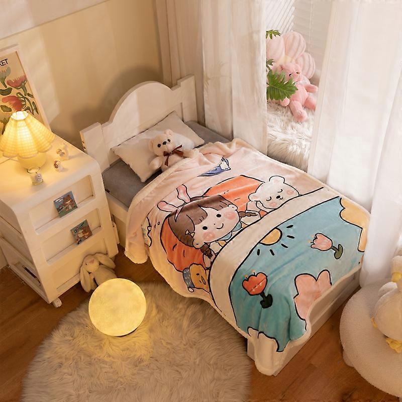 Warm Heart Fleece Kids Blanket Cartoon Print Nursery Blanket Air Conditioning Blanket