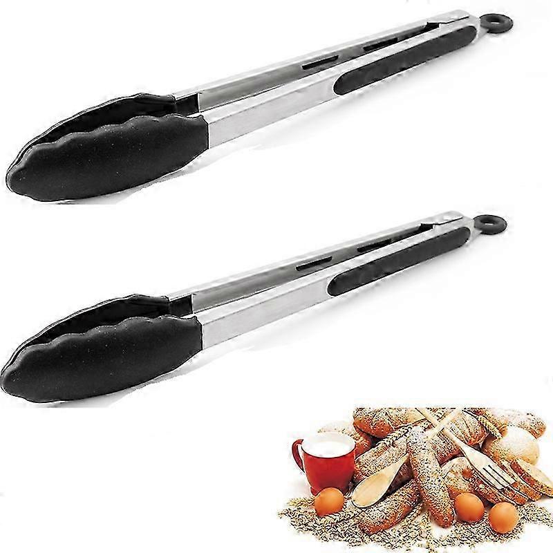 2 Silicone Kitchen Tongs - 12-Inch Stainless Steel Core with Rubber Tips