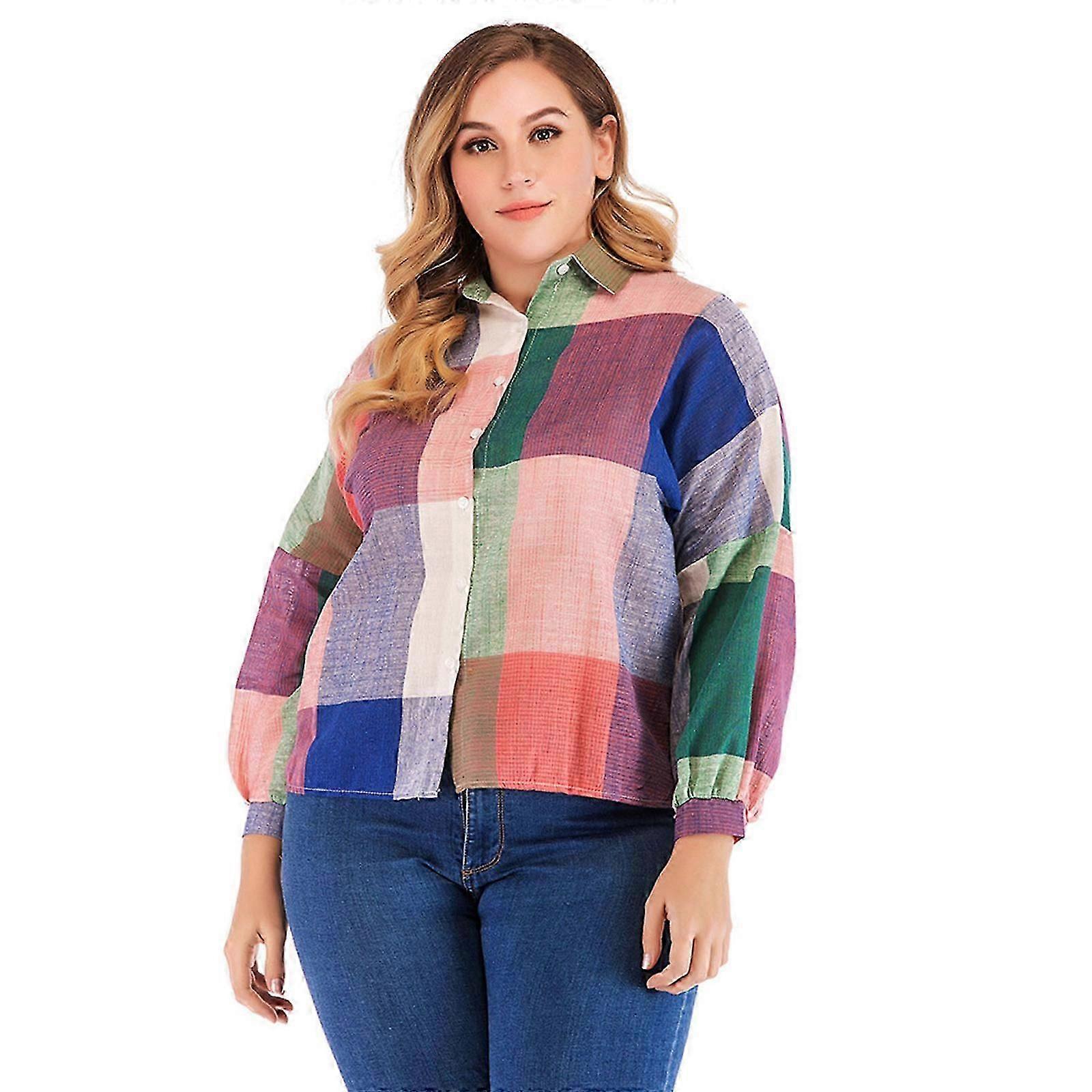 Stylish Plus Size Plaid Shirts for Women Elegant Long Sleeve Button-Up Tops