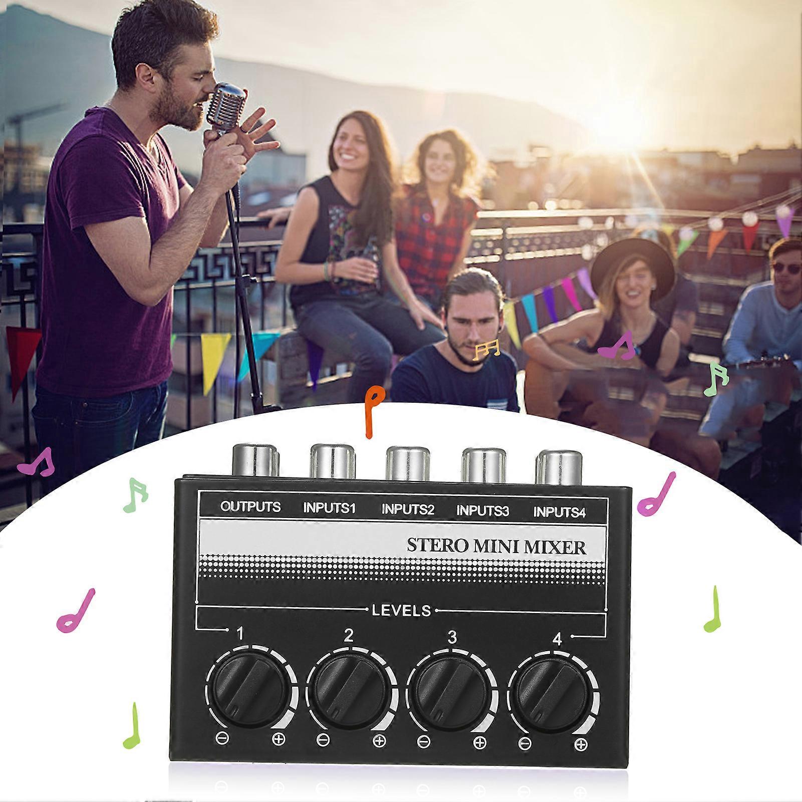 Mini Stereo 4 Channel Passive Mixer RCA Portable o Mixer 1 in 4 Out Stereo Distributor Volume Control, No Battery Required