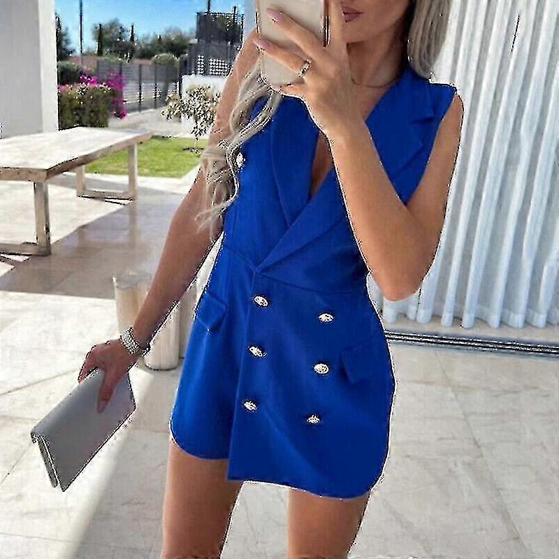 Womens Blazer Skort Shorts Jumpsuit Ladies Ol Romper Blazer Playsuit L blue