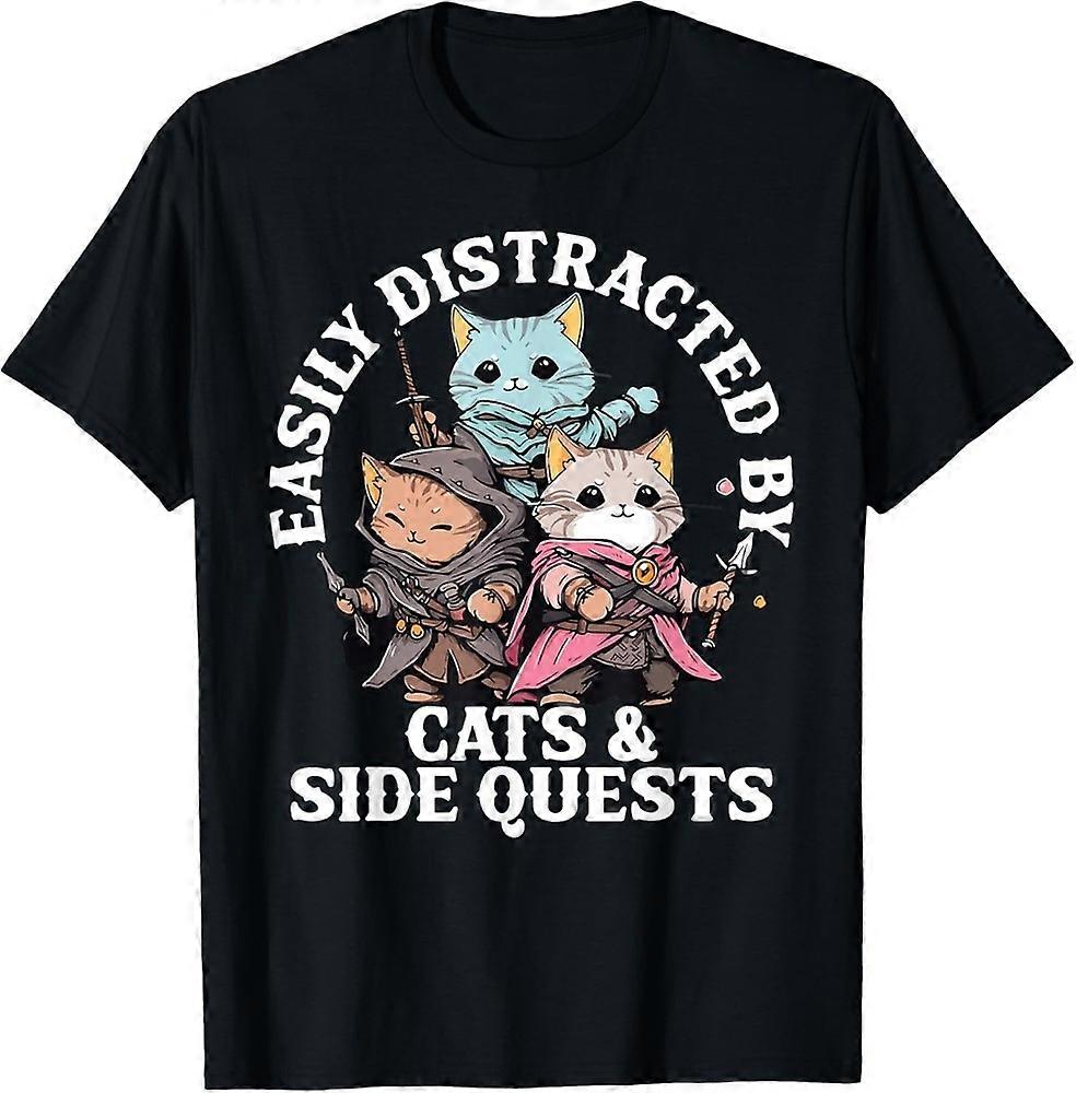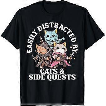 Cats Side Quest Distracted Tabletop Funny Men Women Dad T-Shirt