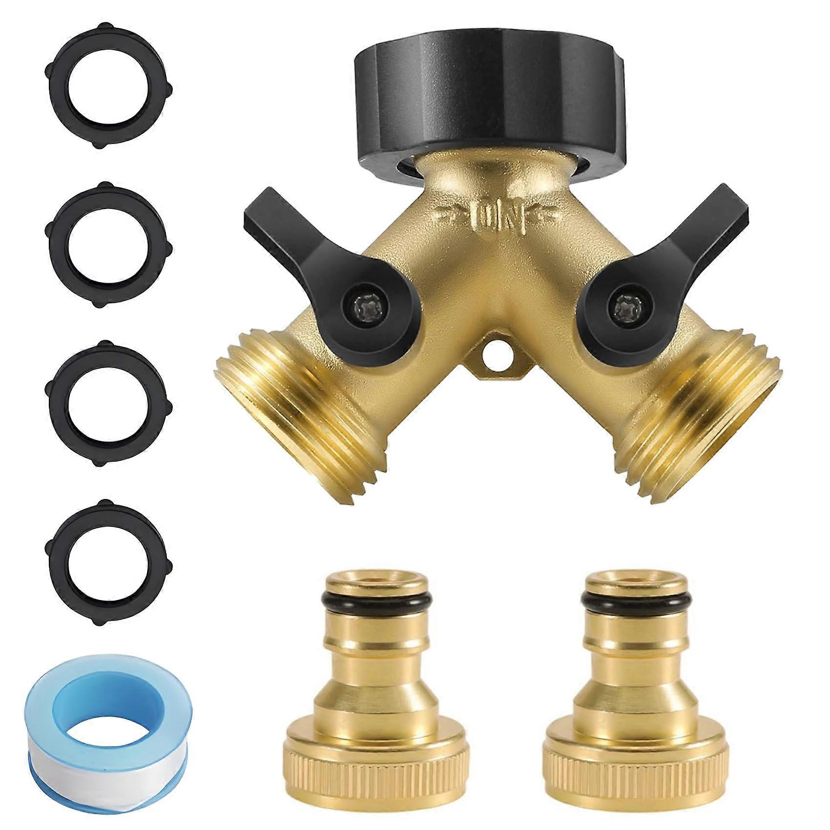 2 Way Garden Hose Splitter 3/4 Inch Brass Tap Connector with Individual On/Off Valves and Quick Connect for Outdoor Use