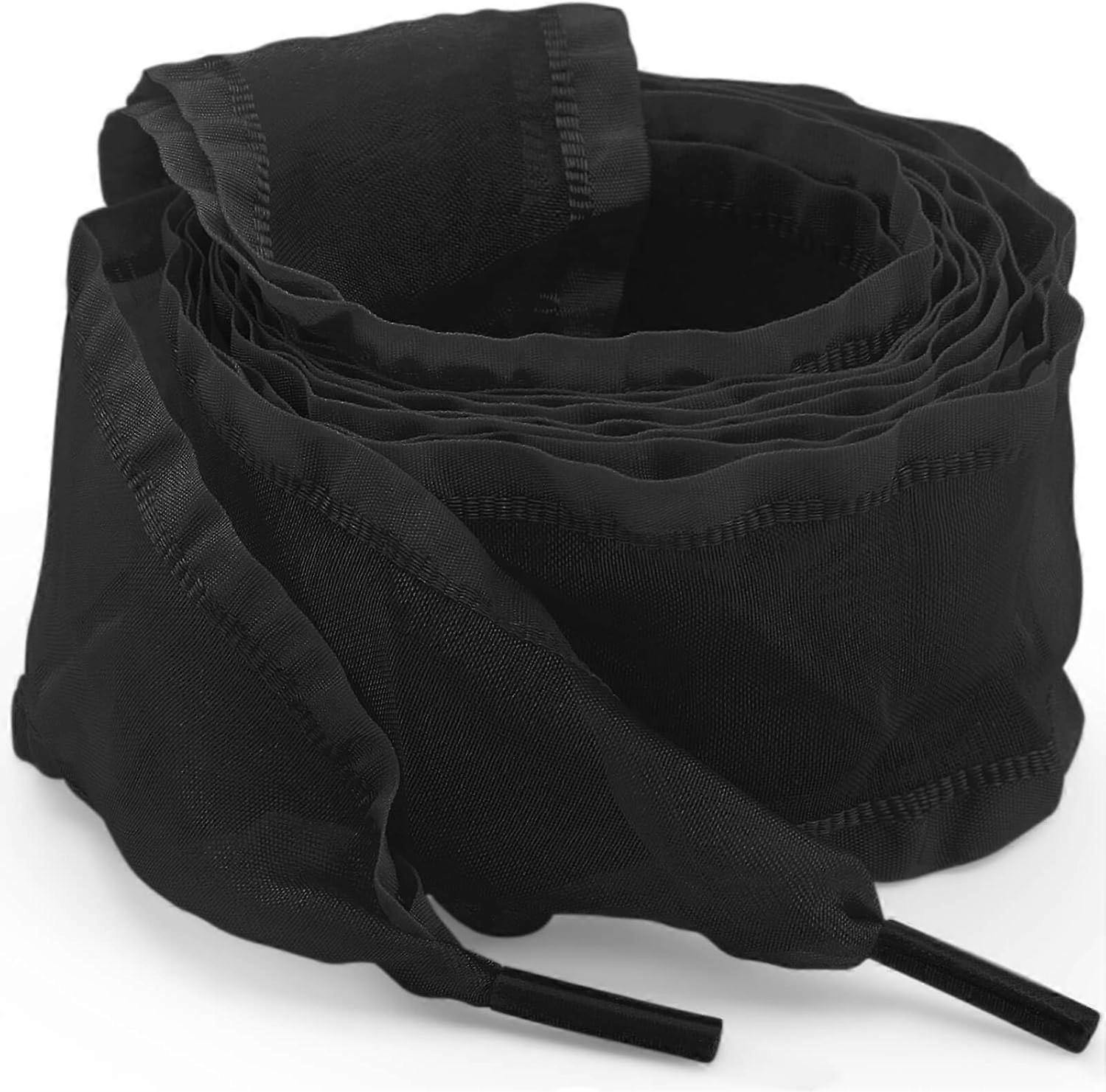Snow Yarn Shoe Laces: 4CM Wide Flat Flounce Sheer Shoelaces for Sneakers 01 Black 47"Inch (120CM)
