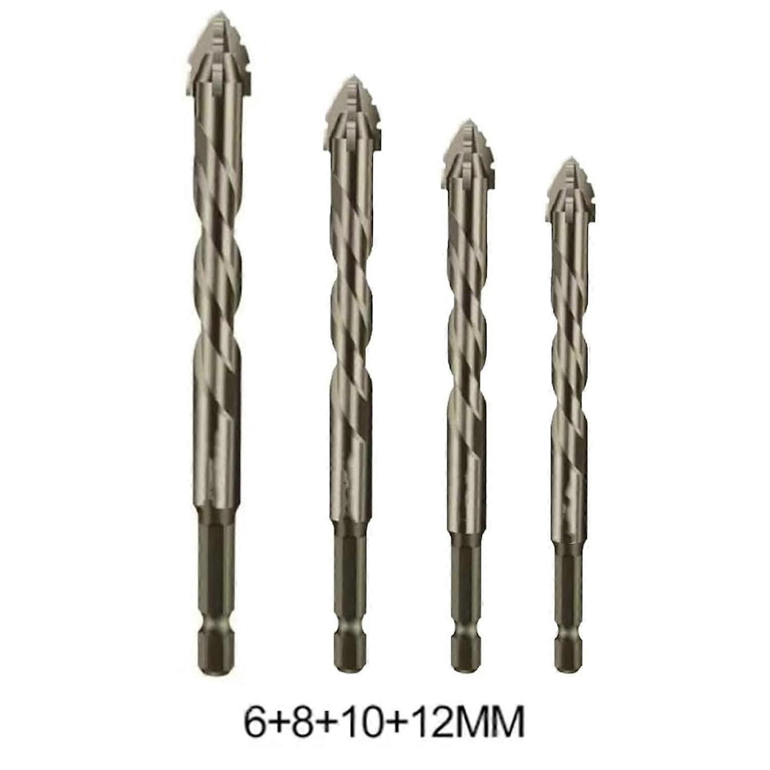 4PCS High Hardness Eccentric Drill Bits, 6mm+8mm+10mm+12mm Four-Flute Sawtooth