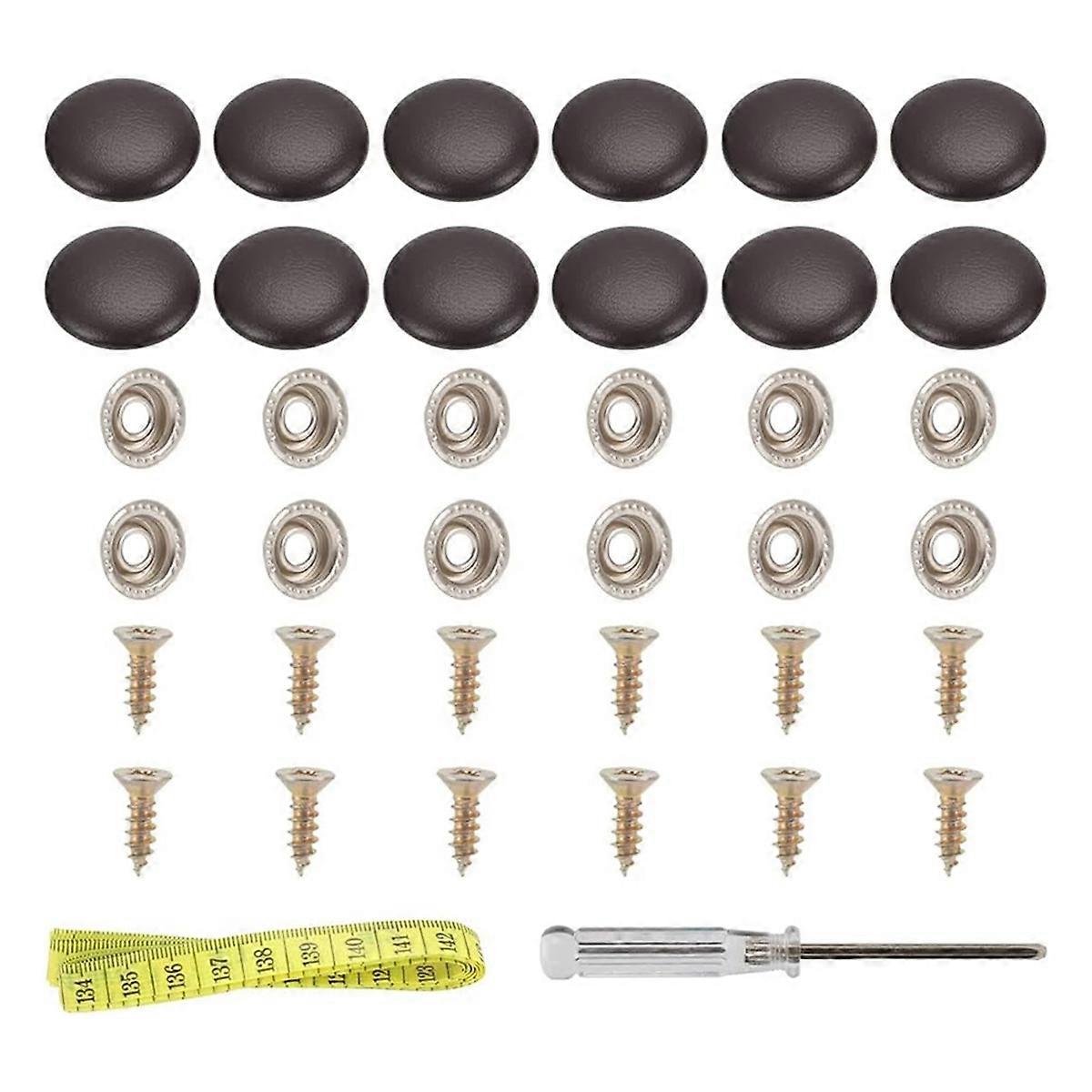 Fitment: Fit perfectly For Tufting Furniture Bed Sofa Chair, Car Seat RV Roof Headliner Interior Cloth. Diameter: 3/4inch In Diameter, these buttons are suitable for most car models, providing a tight and seamless fit to restore the appearance of your headliner. High quality: Well-made with high-quality screws, and the button portion is metal, not plastic like others that break easily. Easy Installation: Comes with a installation tool, making it simple to attach the buttons to your car's interior ceiling without professional help. The process is quick and easy And a little tip: Put some dish detergent on for a tighter fit. Color Match: The color match is amazing. Whether it's for your furniture, , car trunk, or van, it blends in seamlessly. Accessories are random, no specified styles are accepted Color: Coffee Color Material: PU Leather Package Contents: 12 x Leather Snap 1 x ruler 1 x screwdriver Only the above package content, other products are not included. Note: Light reflection and different displays may cause the color of the item in the picture a little different from the real thing. The measurement allowed error is +/- 1-3cm.
