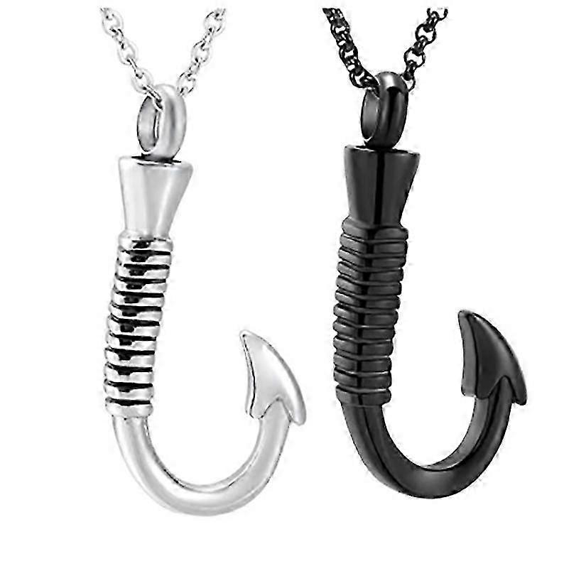 Stainless Steel Cremation Urn Pendant Fishhook Necklace for Ashes Keepsake