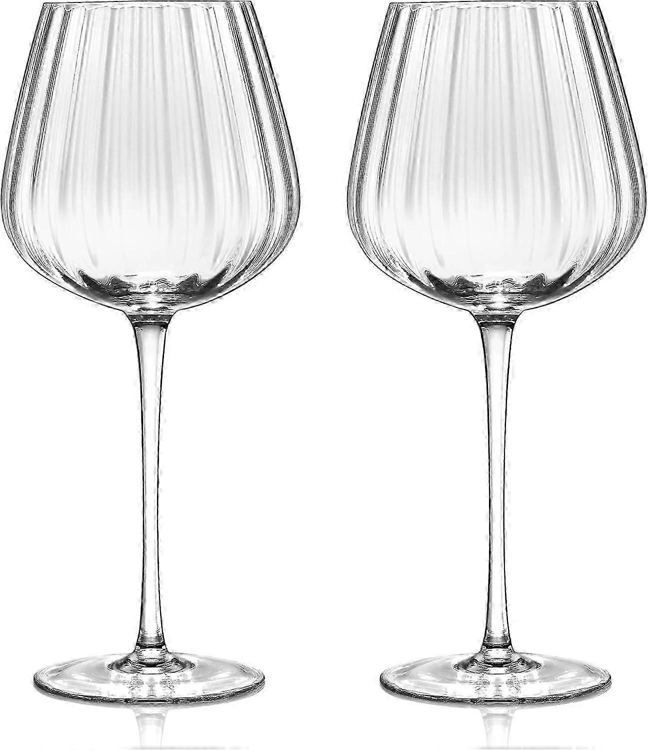 Hand-Blown Crystal Red and White Wine Glasses,Clear Ribbed Stemmed Glasses,Modern Long Stem Glassware Set,Gifts for Wine Tasting Birthday Anniversaryx