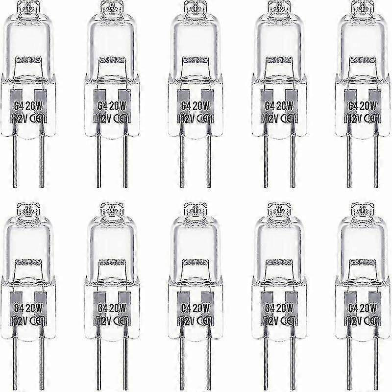 Set Of 10 G4 Halogen Bulbs Of 12v And 20w. These Bulbs Emit 3000k Warm White Light, With A Brightness Of 350 Lumens. They Are Dimmable And Have A Tran
