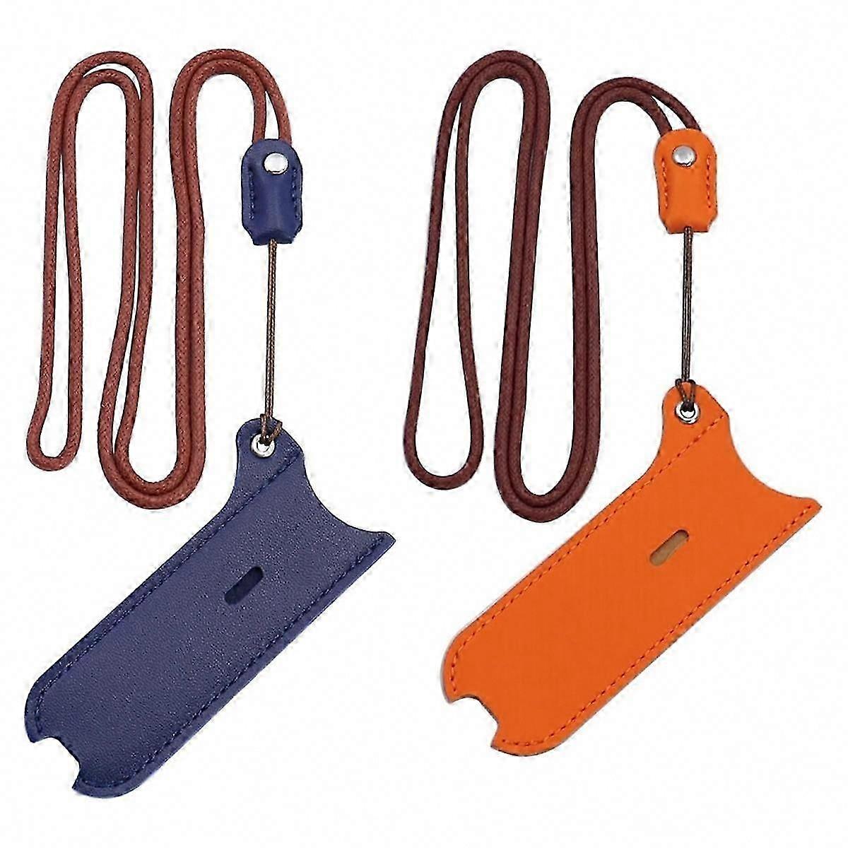 PU Leather Lanyard Case for Pen Cover with Protective Strap [Blue+Orange, 2 Pack]