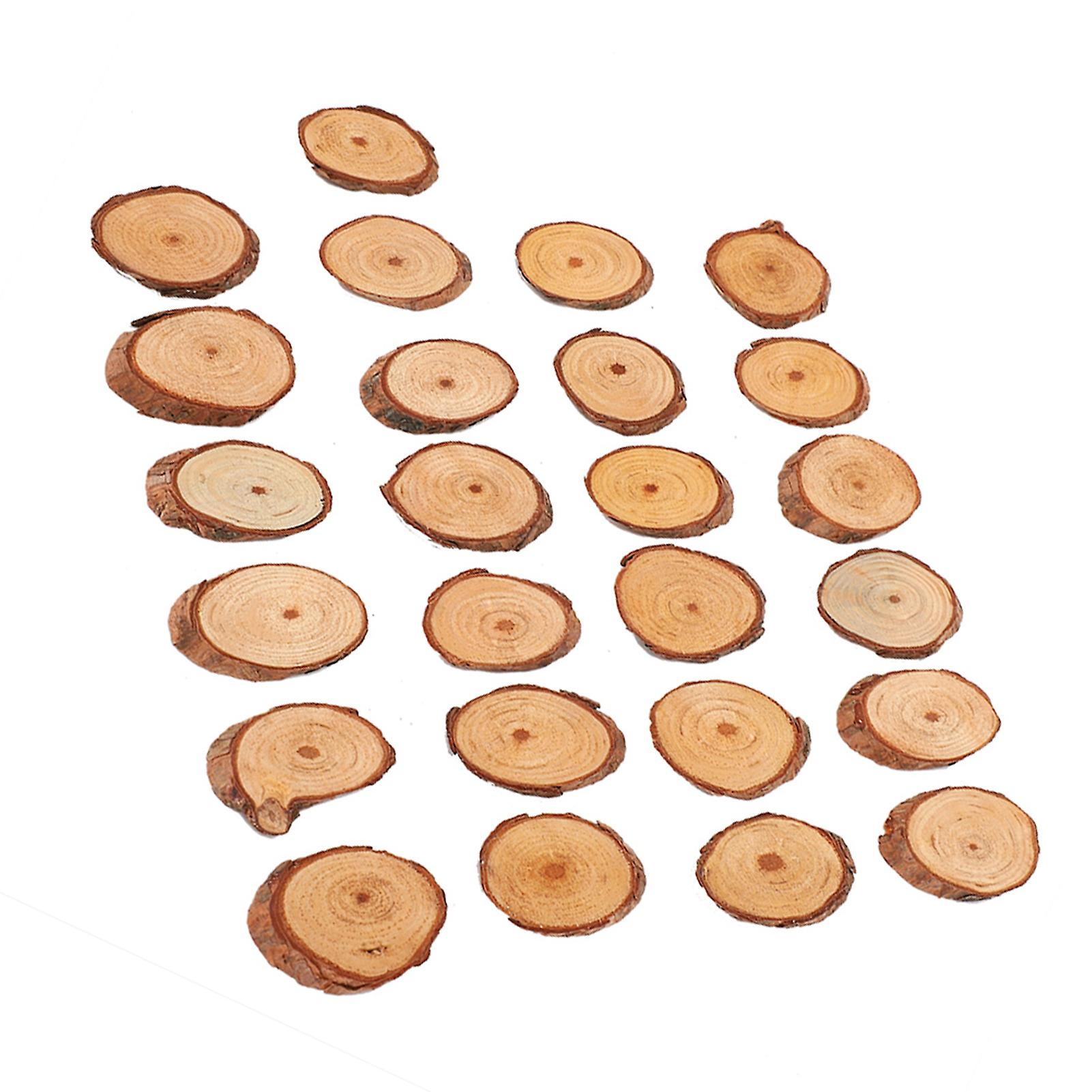 25Pcs Pine Oval Wood Chips 6x4x0.5cm DIY Handmade Decor