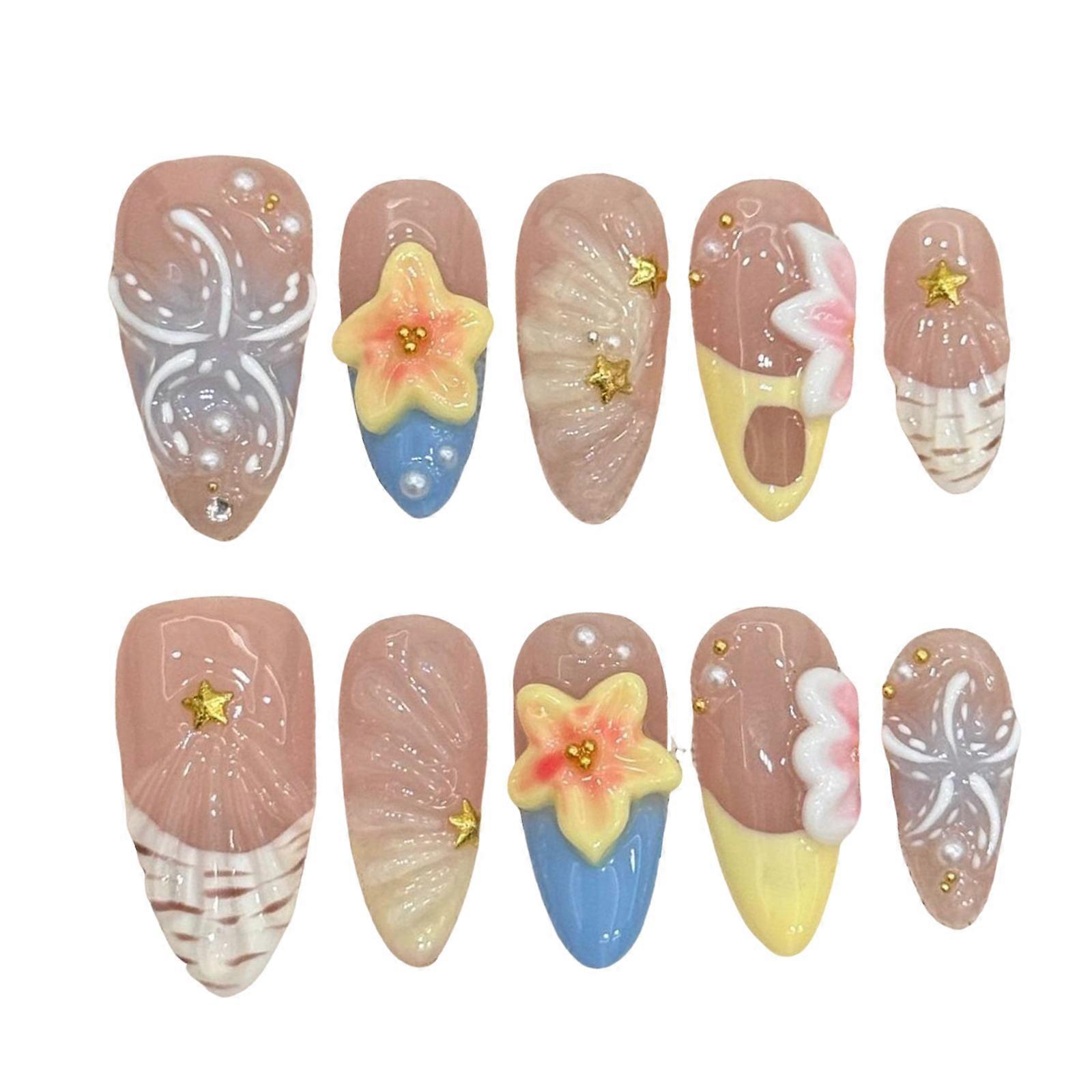 10PCS Almond False Nails with Stars Decor Sweet & Charming Reusable False Nails
