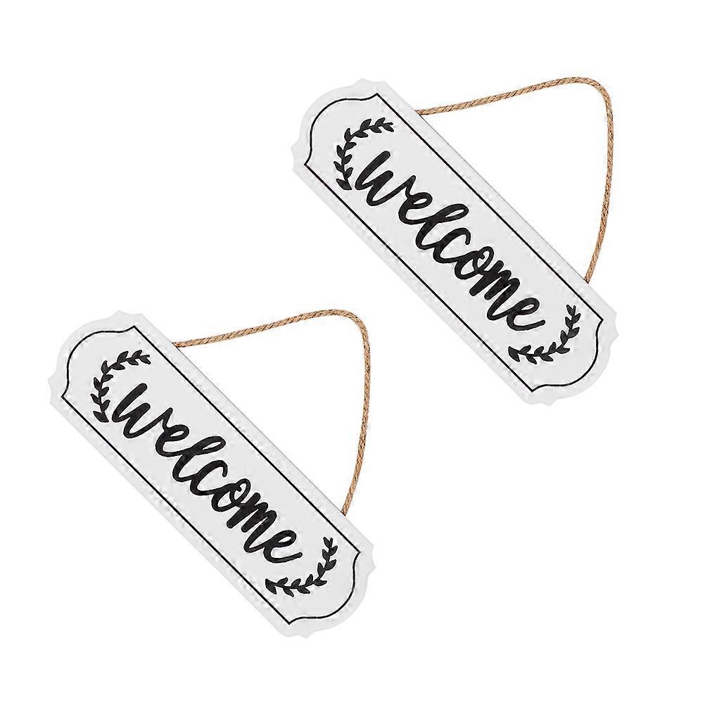 Door Welcome Sign 2Pcs White Wooden Craft Decor Wall Hanging Ornament for Decor