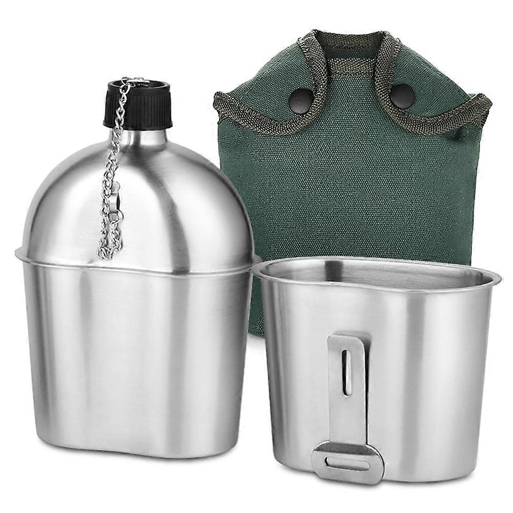 2PCS Stainless Steel Military Canteen Set 1000ml+600ml Green Bag