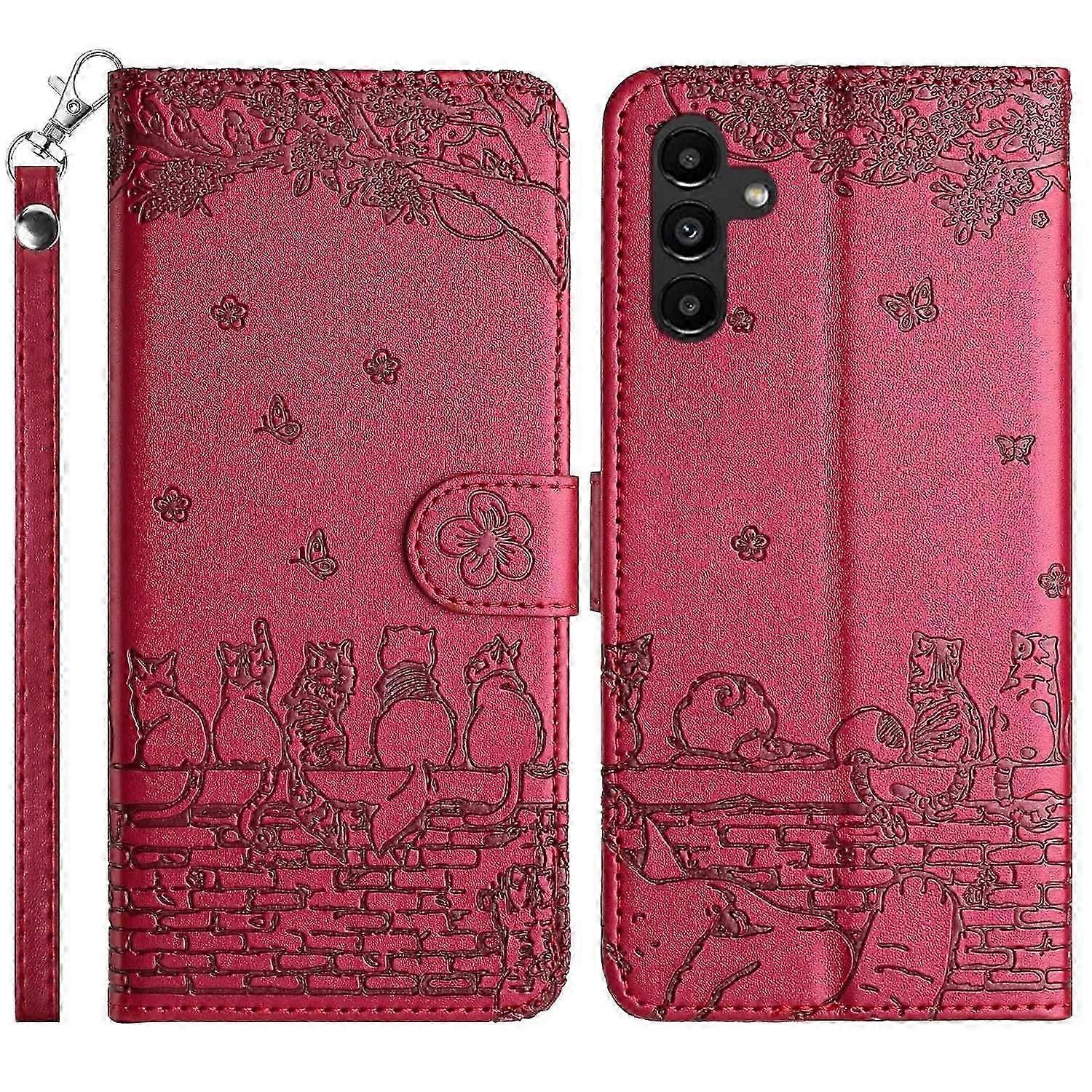 Leather Phone Cover with Wrist Strap for Samsung Galaxy A26 5G Featuring British Wall Cats Design