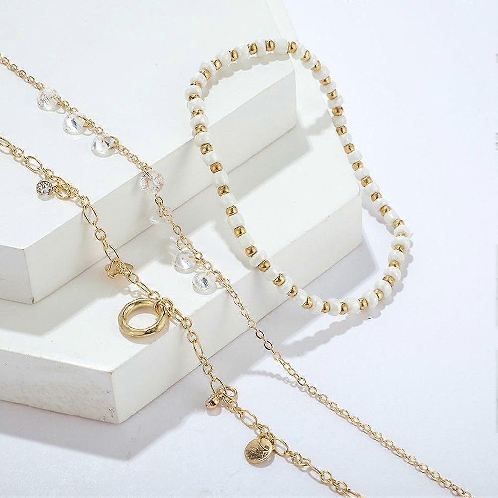 1Set / 3Pcs Creative Elegant Anklet Graceful Tassels Circular Foot Chain Euramerican Beads Chain for Woman Girl Lady (Golden)
