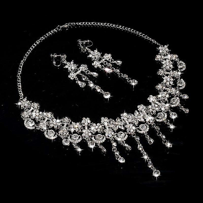 Bride Wedding Luxury Jewelry Set Glitter Crystal Tassels Silver Necklace