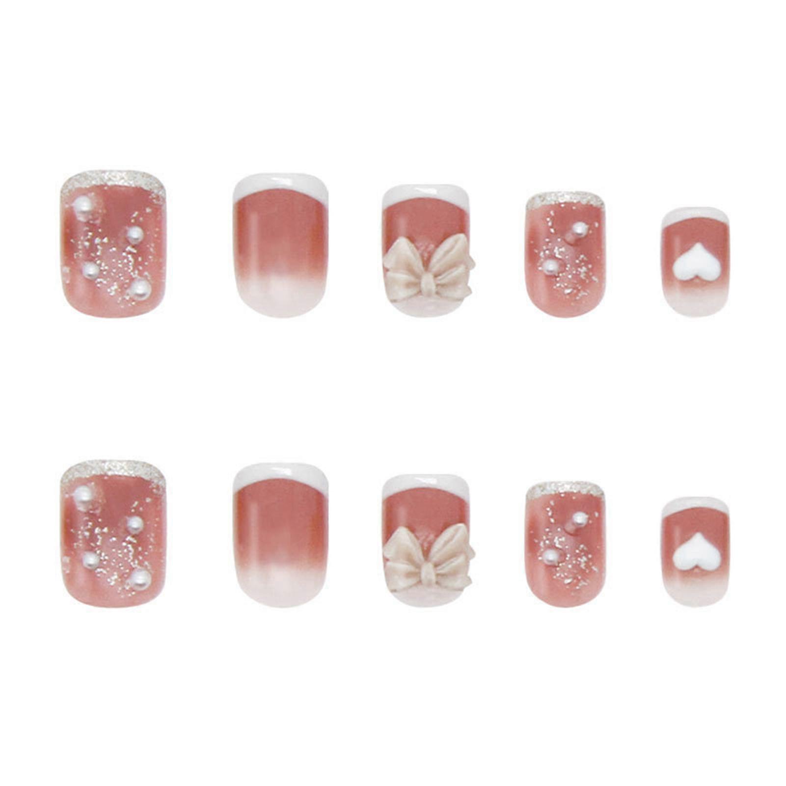 24pcs Pink Bow Wear Short Paragraph Fashion Manicure Patch False Nails Save Time